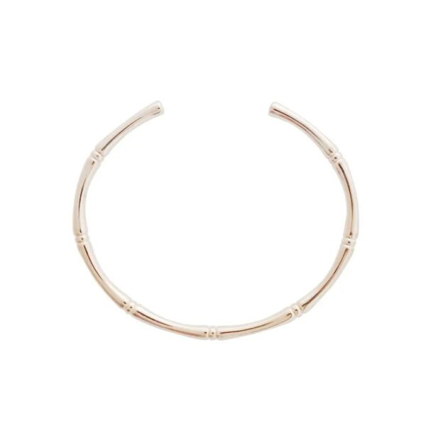 A polished. bamboo inspired cuff. A gorgeous piece worn alone or stacked alongside your favorite bracelets. Measures: 2" x 2.5"; an open. adjustable band.