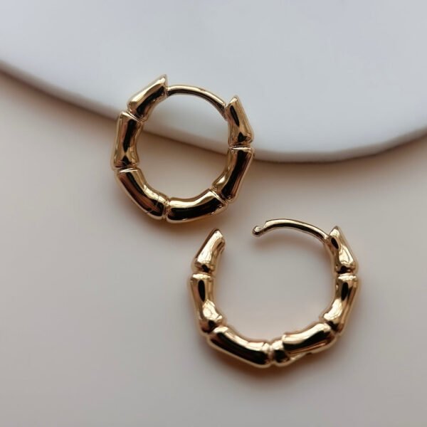 These small bamboo hoops bring just the right amount of bold with their textured. sculptural curves. Lightweight and endlessly wearable – they're your everyday statement without saying too much. These hoops close with a leverback clasp. which makes them extra comfortable to wear.