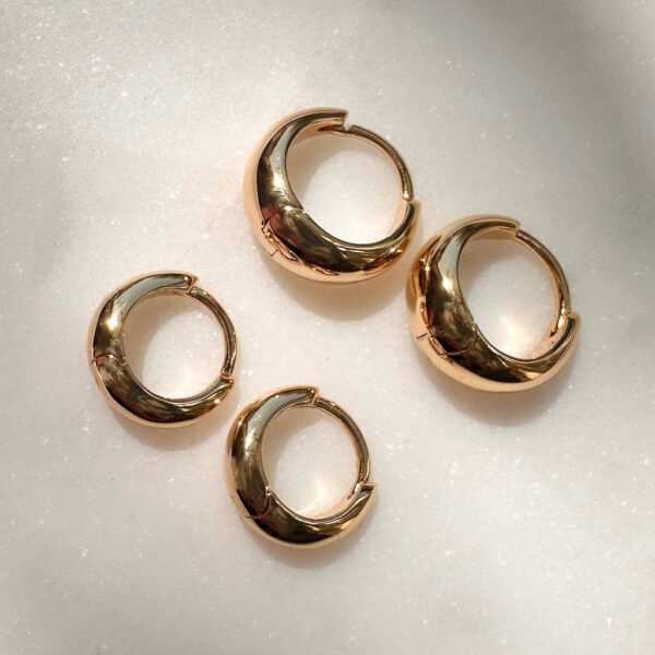 Domed huggie hoops that hug your earlobe just right. For the perfect fit. we made them in three sizes – 10mm. 13mm. and 17mm. Polished. lightweight. and ridiculously stylish and comfortable. these are the kind of hoops you’ll reach for day after day. Trust us – once they're on. you won’t want to wear anything else.