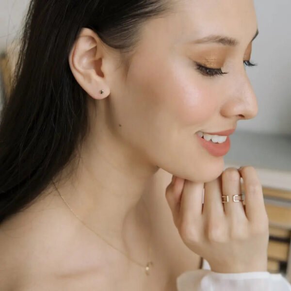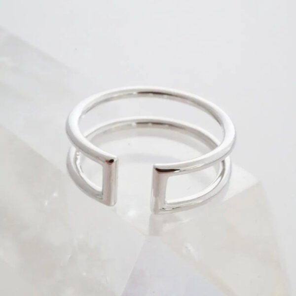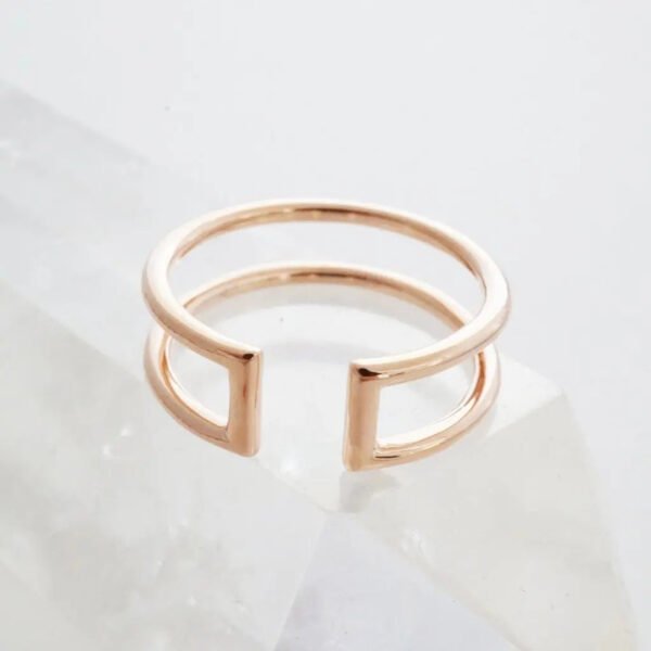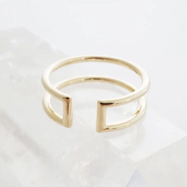 A versatile. open ring that can be worn multiple ways. Gorgeous worn open side up or down. solo. stacked. on your ring finger. midi finger. thumb. or pointer finger – the possibilities are endless. 6 mm tall; 1.5 mm thick bands.