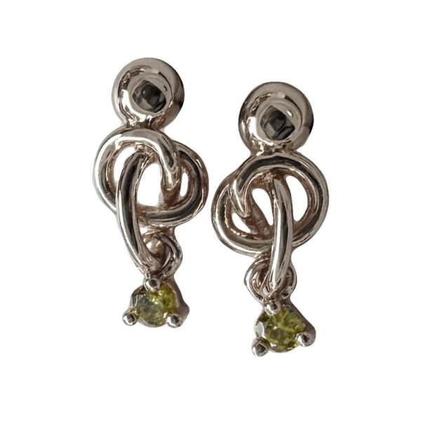 Our Knotty Serpent drop chain studs feature a green crystal connected by a tiny knot. A charmingly simple perfect little pairing to add a little sparkle to your ears.