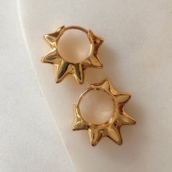 Gently curved spear-like drops give these huggie hoops a bold. sculptural feel – edgy. yet polished. Designed to move with you. they catch the light just enough to add a sleek shimmer to your everyday look. Effortless to wear. striking to style. Hoops measure 17mm.