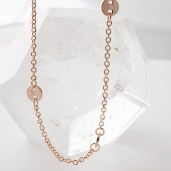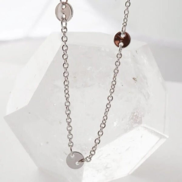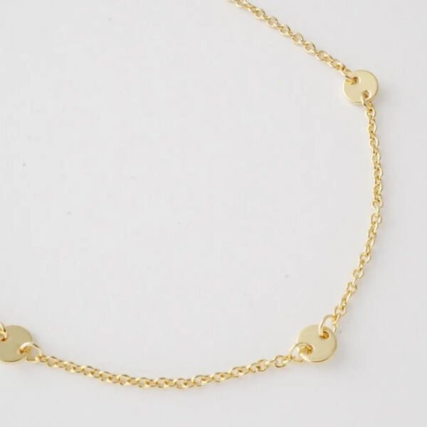 Tiny circle discs perfectly spaced on our classic whisper thin chain – these confetti like pendants catch light in brilliant little flashes with your every move. So lightweight and comfortable to wear. it's easy to add this delicate piece to your everyday style.