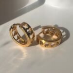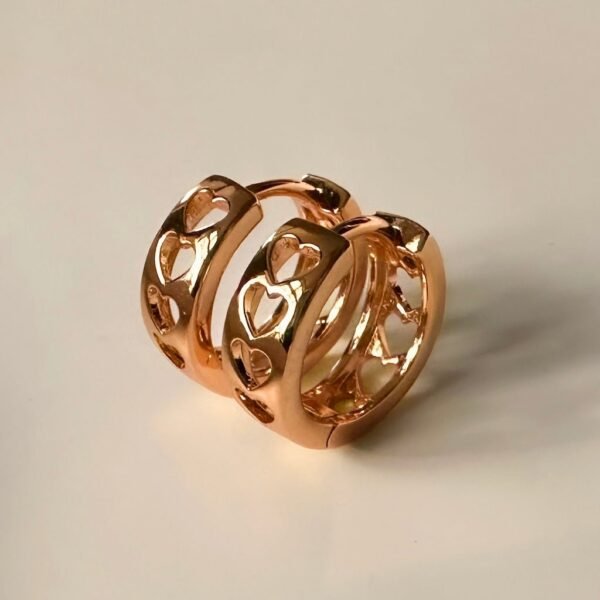 Gently curved and boldly sweet. these thick hoops feature a playful line of cut-out hearts for a touch of unexpected charm. Finished with a secure leverback clasp. they’re as comfortable as they are cute – perfect for everyday wear with just the right amount of personality. Hoops measure 15mm x 4mm.