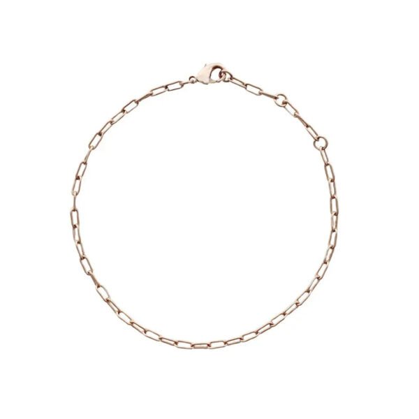 Our oval chain bracelets are plated with 18k gold. 18k rose gold. or rhodium and finished with a protective coating. A little secret we’ll keep between us: it looks way more than it costs.